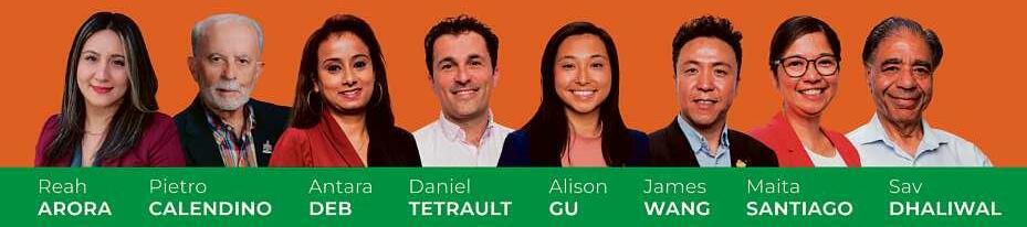 This included Burnaby Citizens Association in cumbent councillors Ali son Gu, Sav Dhaliwal, Pi etro Calendino and James Wang, and BCA hope fuls DanielTetrault, An tara Deb, Reah Arora and Maita Santiago, as well as Burnaby Green Party’s Carrie McLaren, Jasmine Nicholsfigueiredo and Tara Shushtarian