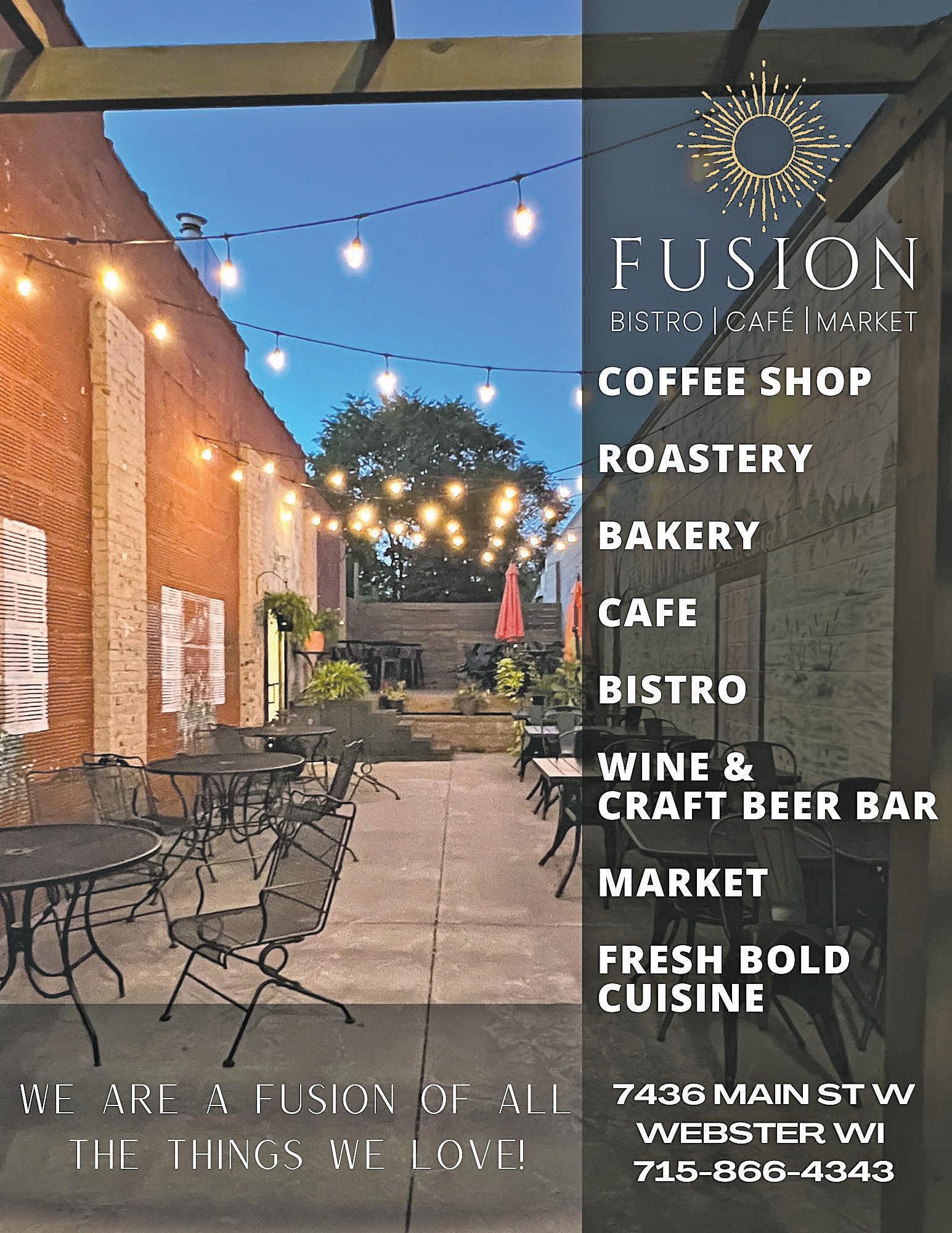 Fusion Bistro Cafe Market 7436 Main St W, Webster, WI (715) 866-4343 fusionbcm.com