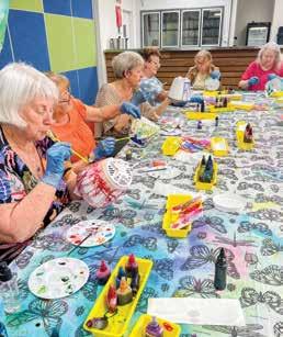 Creating one-of-a-kind, eyecatching designs in our GOLD Alcohol Inks on Pots workshop.