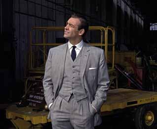 Esempio di tenuta semiformale: nel film Missione Goldfinger (1964) Sean Connery indossa un tre prezzi grigio con sobria fantasia in principe di Galles. Da notare il panciotto munito di revers che presenta sei bottoni di cui l’ultimo slacciato. I baveri della giacca sono molto stretti, com’era di moda negli anni Sessanta. Un sobrio fazzoletto bianco, piegato a filetto, fa capolino dal taschino. I pantaloni presentano doppie pinces all’inglese, aperte cioè verso l’interno. Completano la mise una camicia bianca con colletto classico e un’inoffensiva cravatta blu.