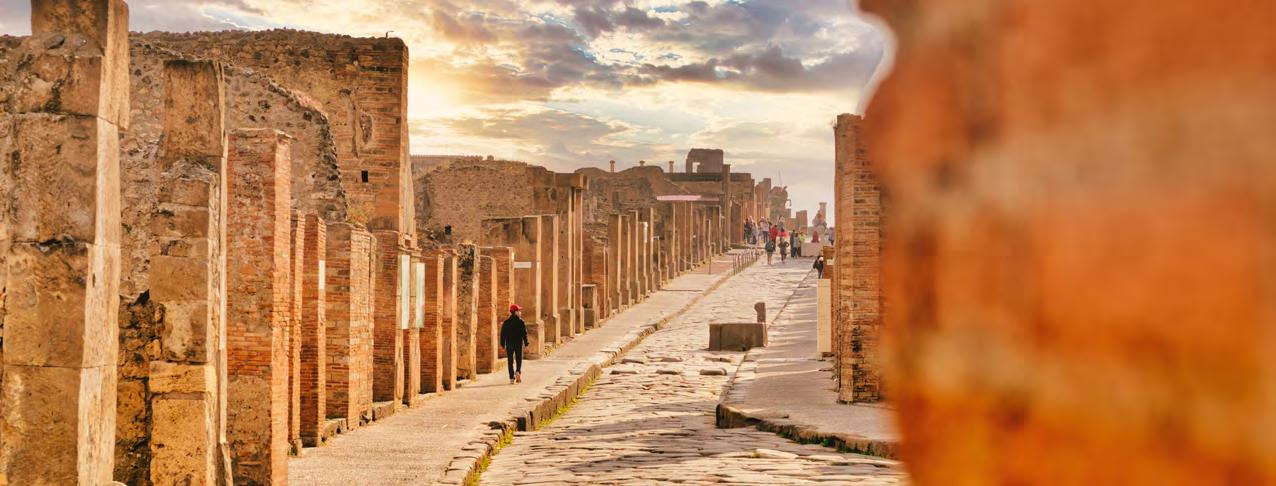 3. Tag: Busfahrt nach Pompej und Besichtigung dieser archäologischen Stätte. Die einst wohlhabende und kultivierte römische Stadt wurde nach einem verheerenden Vulkanausbruch des Vesuvs unter einer meterhohen Asche- und Bimsschicht begraben. Im Zuge dieses Ausflugs werden Sie die freigelegten Ruinen der Stadt besichtigen. Ein weiteres Highlight an diesem Tag ist die Führung durch den einzigen aktiven Vulkan auf dem europäischen Festland. Rückfahrt zur Unterkunft.