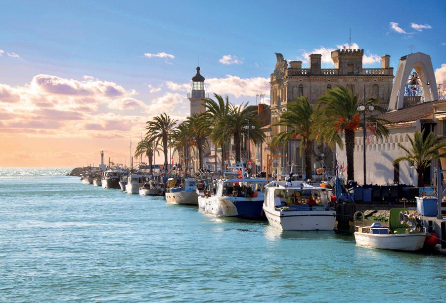 6. Tag: Der heutige Tag startet nach Aigues-Mortes. Am Nachmittag entdecken Sie die Camargue mit den Stierherden, weißen Pferden und rosa Flamingos bei einer Safari. Nach einer Verkostung einiger kulinarischen Spezialitäten und Wein geht es zum „Cabaret der tanzenden Pferde“.