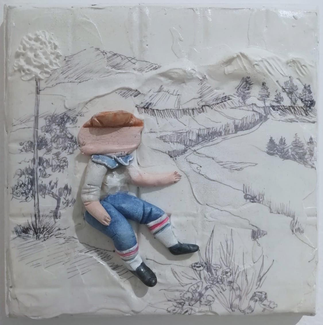 Acrílico y grafito sobre porcelanicrón. 34x44 cm.