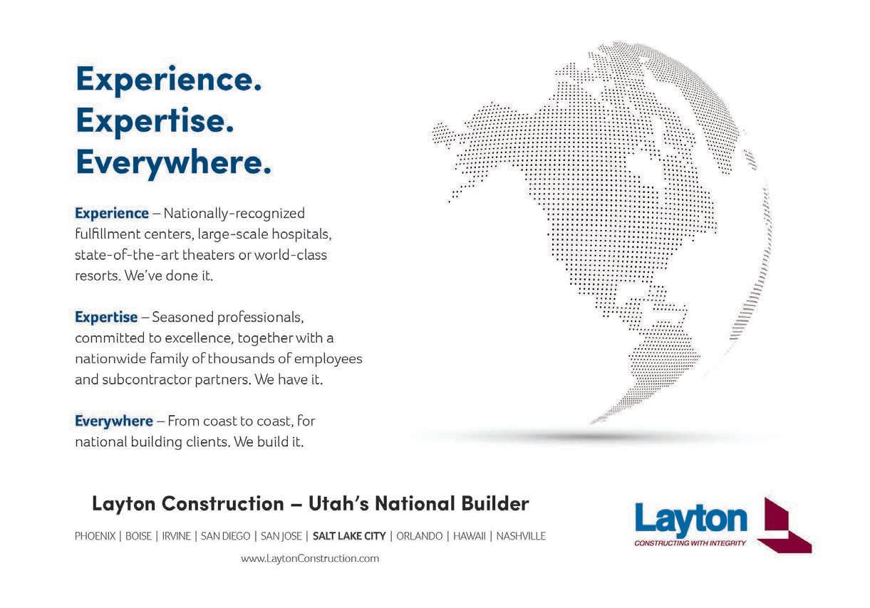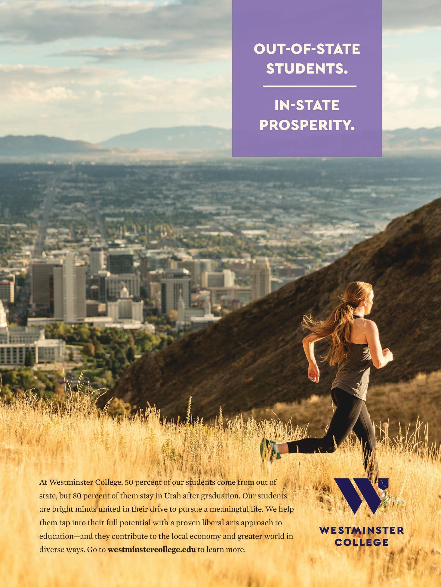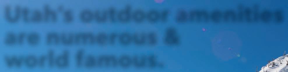 Utah’s cities outperform as well. When the Milken Institute released its annual Index of BestPerforming Cities in January, three Utah locations surged to the top: Provo-Orem, Salt Lake City and St. George. Provo-Orem ranks No. 1 among all large metro areas in the country, while Salt Lake City ranks second. St. George ranks No. 2 among all small metros.