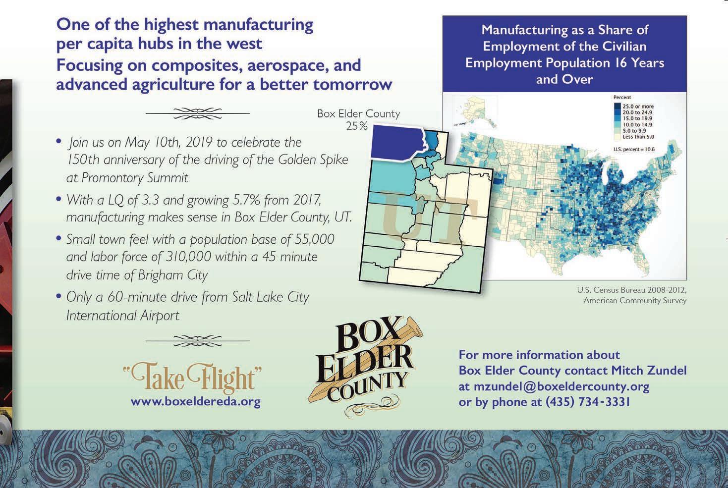 “We’re extremely diversified in manufacturing,” says Todd Bingham, president of the Utah Manufacturers Association. “The supply chain for manufacturing is very wellconnected, and many of our manufacturing companies do business in multiple sectors. There’s a very good mixture,” says Bingham, “of high-tech manufacturing and then traditional manufacturing.”