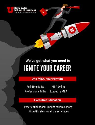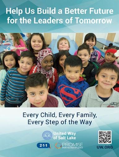 16 Schools • Infant–12th Grade • All Faiths Welcome 99% Graduation Rate • 98% College Bound www.dioslc.org/schools Part of the Utah educational landscape for 145 years There are more than 1,300 children classified as homeless in Davis School District. Our goal is to remove barriers for these students by providing them with a safe place to shower, do laundry, study, and access resources. The first teen center is now open at Clearfield High, where 50-60 students stop in each day. Seven more centers will open at Woods Cross, Layton, Northridge, Mountain High, Renaissance Academy, Viewmont, and Syracuse. You can help! H E L P S T U D E N T S I N C R I S I S Learn More Donate daviseducationfoundation.org B U I L D I N G T E E N R E S O U R C E C E N T E R S I N D A V I S S C H O O L D I S T R I C T 201 S. Main St., Ste. 1800 | Salt Lake City, Utah 84111 | 801.532.1234 At Parsons Behle & Latimer we view our regional approach a little differently than most. Parsons combines the personal service of a regional firm with the expertise and qualifications of a national practice. Our unique approach means you don’t have to look far to find the legal experience you need. See how we can assist you by visiting parsonsbehle.com SALT LAKE CITY | BOISE | HELENA | IDAHO FALLS | LEHI | MISSOULA | RENO