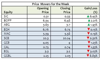 The market ended the week with no advancer and 2 decliners as indicated on the table below.