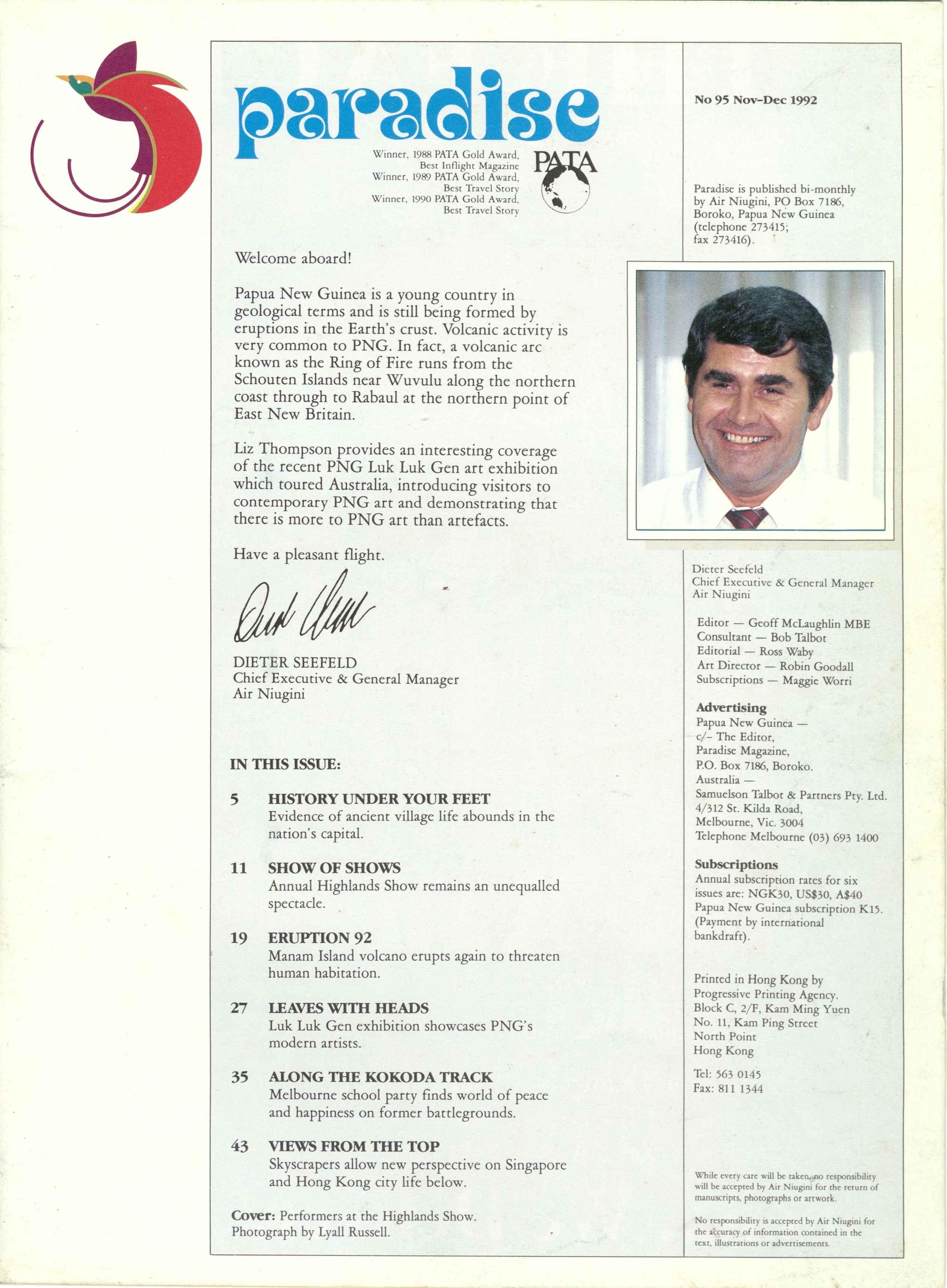 ssue 95 November 1992 of Paradise magazine, the inflight magazine of Air Niugini, the national airline of Papua New Guinea.