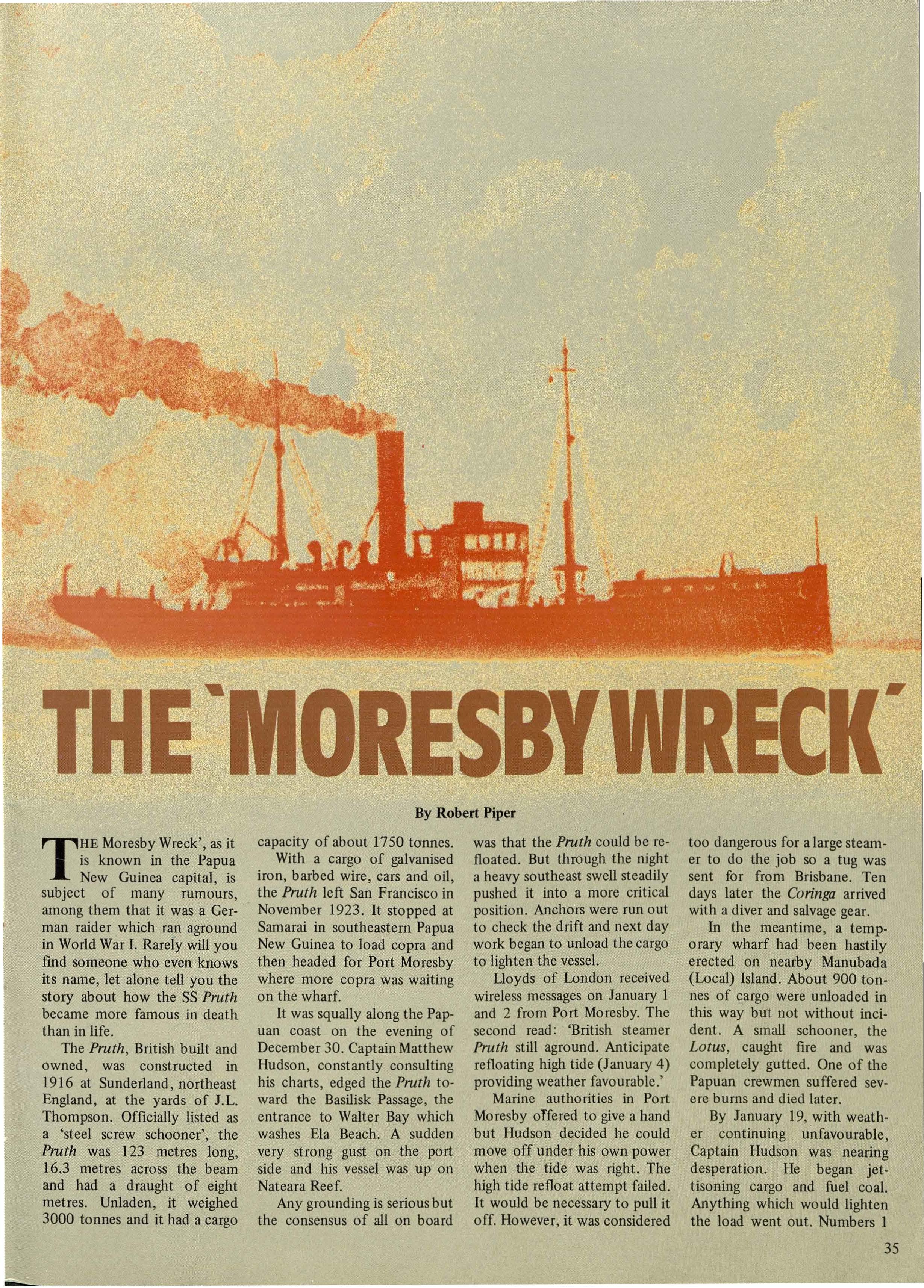 THE Moresby Wreck', as it is known in the Papua New Guinea capital, is subject of many rumours, among them that it was a German raider which ran aground in World War I. Rarely will you find someone who even knows its name, let alone tell you the story about how the SS Pruth became more famous in death than in life.