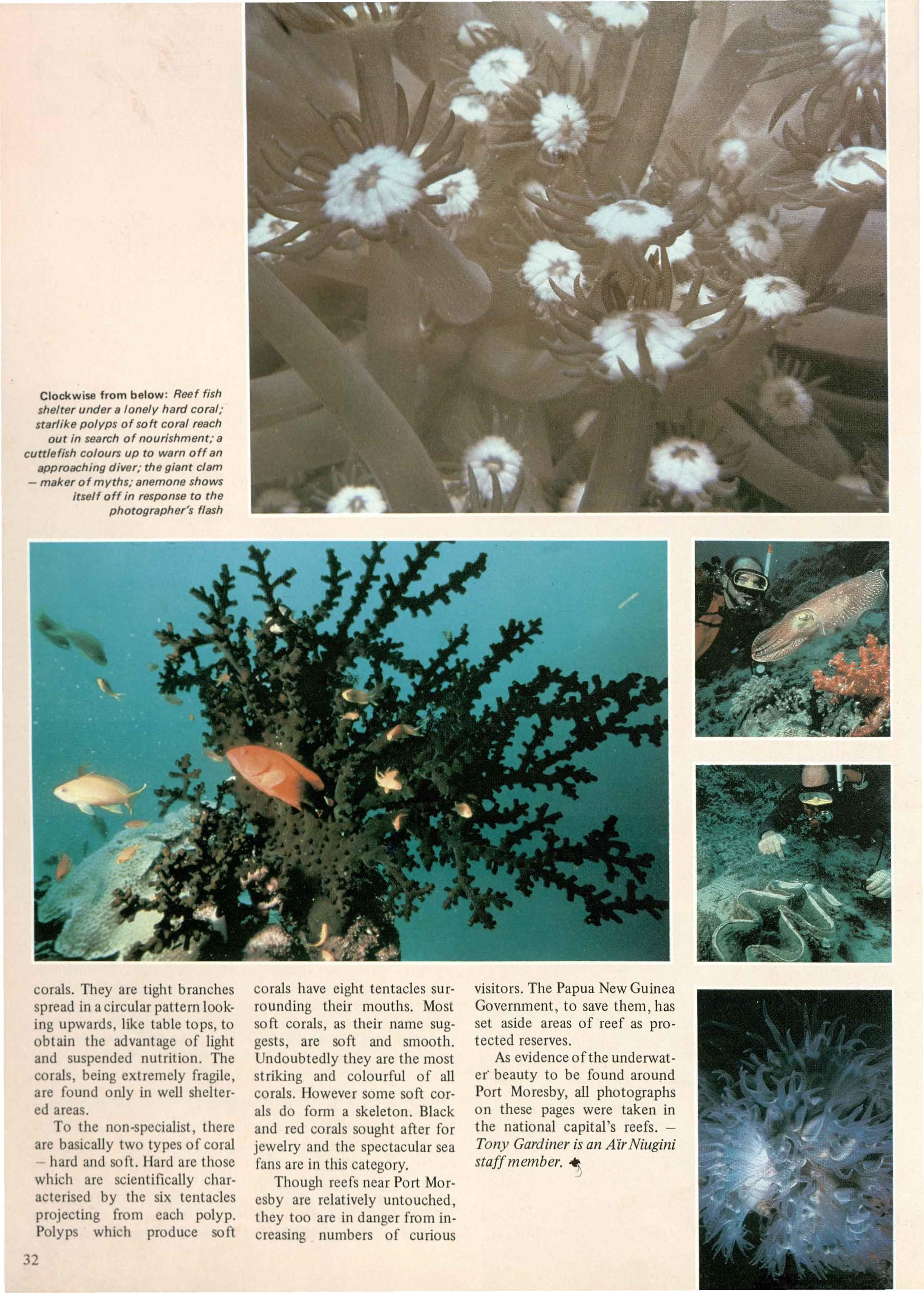 As evidence of the underwater' beauty to be found around Port Moresby, all photographs on these pages were taken in the national capital's reefs.Tony Gardiner is an Ai'r Niugini staffmember.