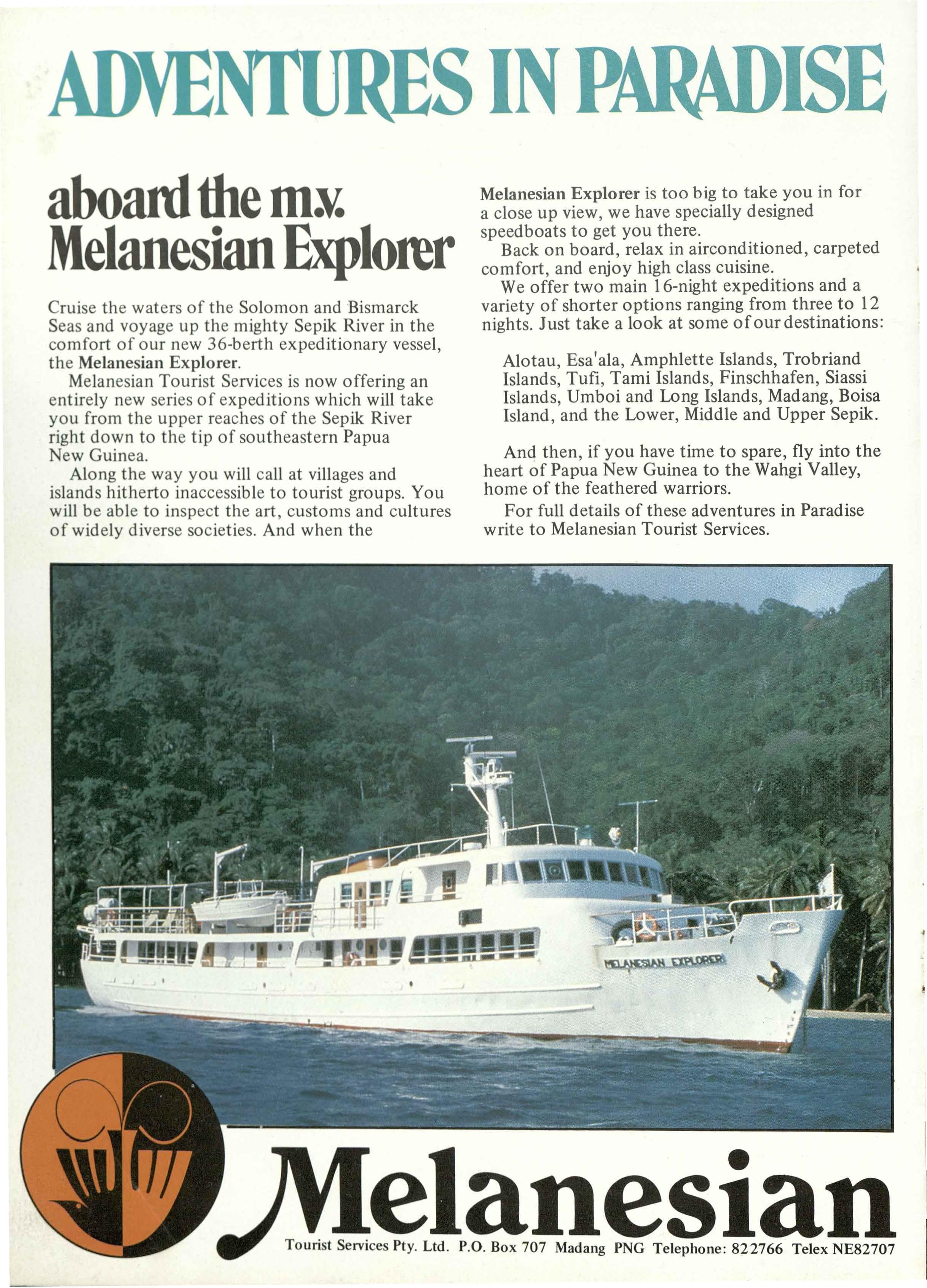 Advertising: Papua New GuineaPublications Department, Air Niugini, PO Box 7186, Boroko Australia - The Globe Bridge Company, 1 la Euroka Street, Waverton, NSW 2060 (telephone (02) 921249)
