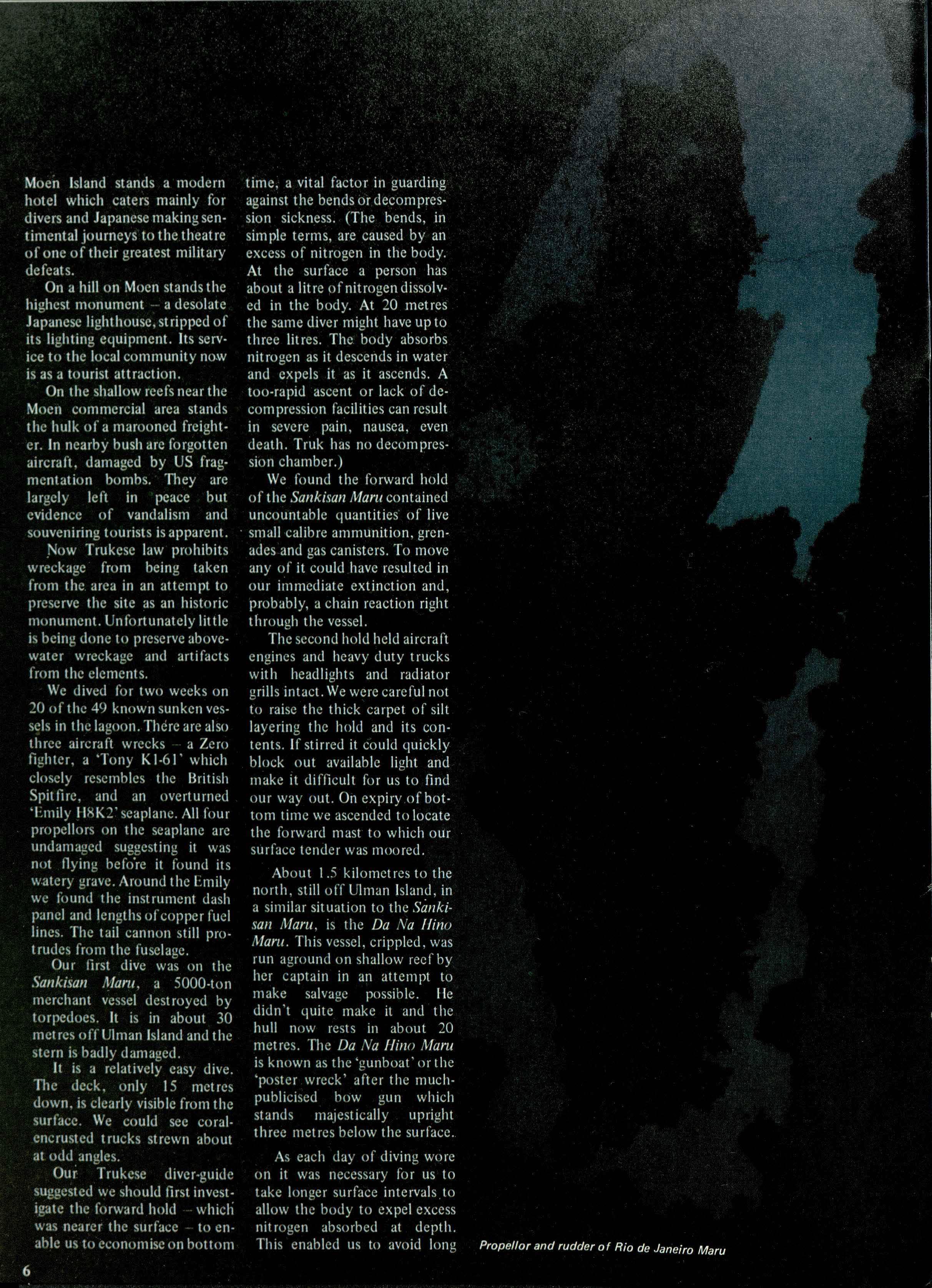 Papua New Guinea is a top destination for divers from all over the world. And so is Truk Lagoon. Air Niugini diving enthusiast Tony Gardiner describes Truk as a 'large open grave - a memorial to the idiocy of war'.