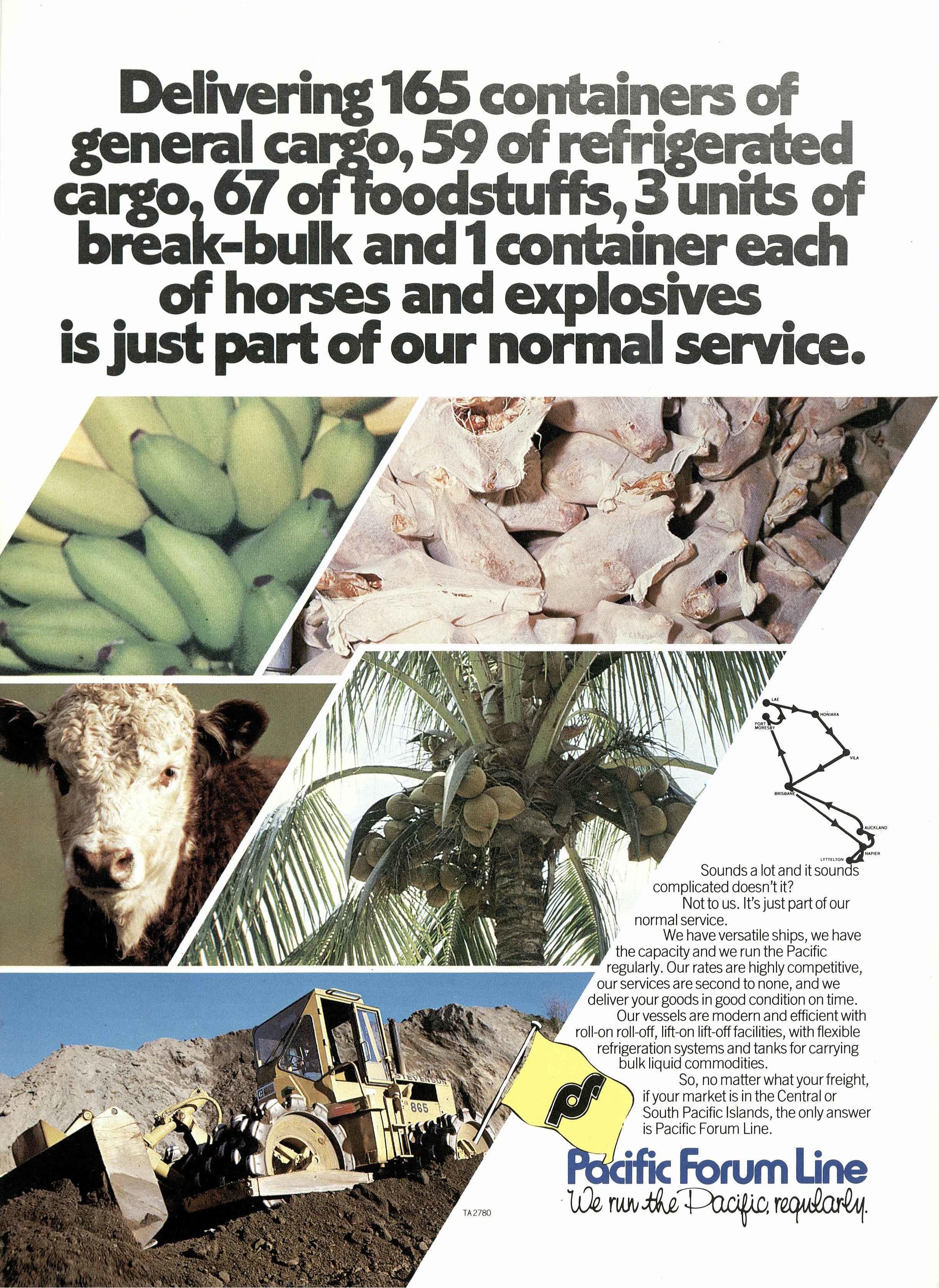So, no matterwhat yourfreight, if your marketis in the Centralor SouthPacificIslands,the onlyanswer is PacificForumLine.