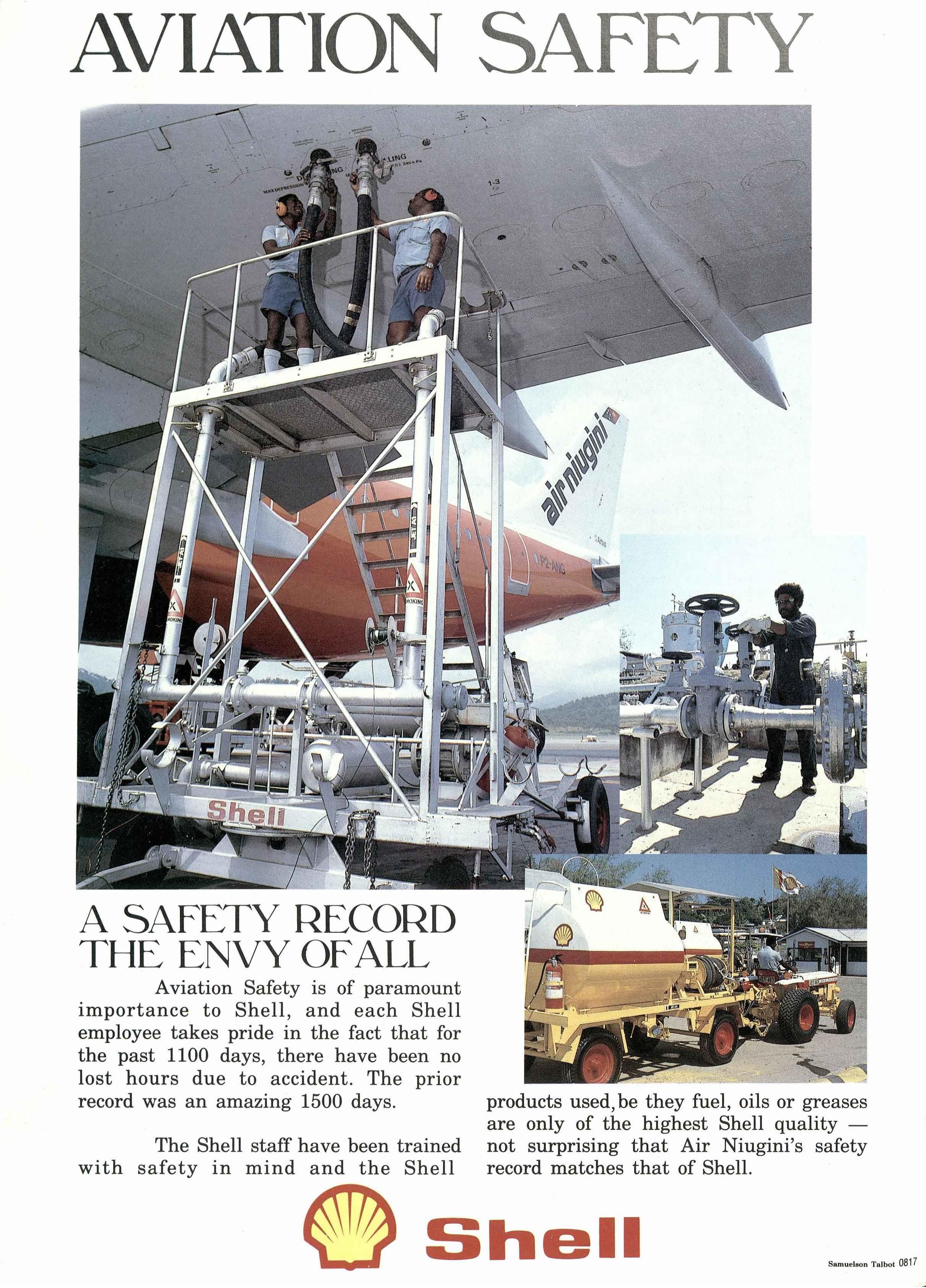 products used, be they fuel, oils or greases are only of the highest Shell qualitynot surprising that Air Niugini's safety record matches that of Shell.