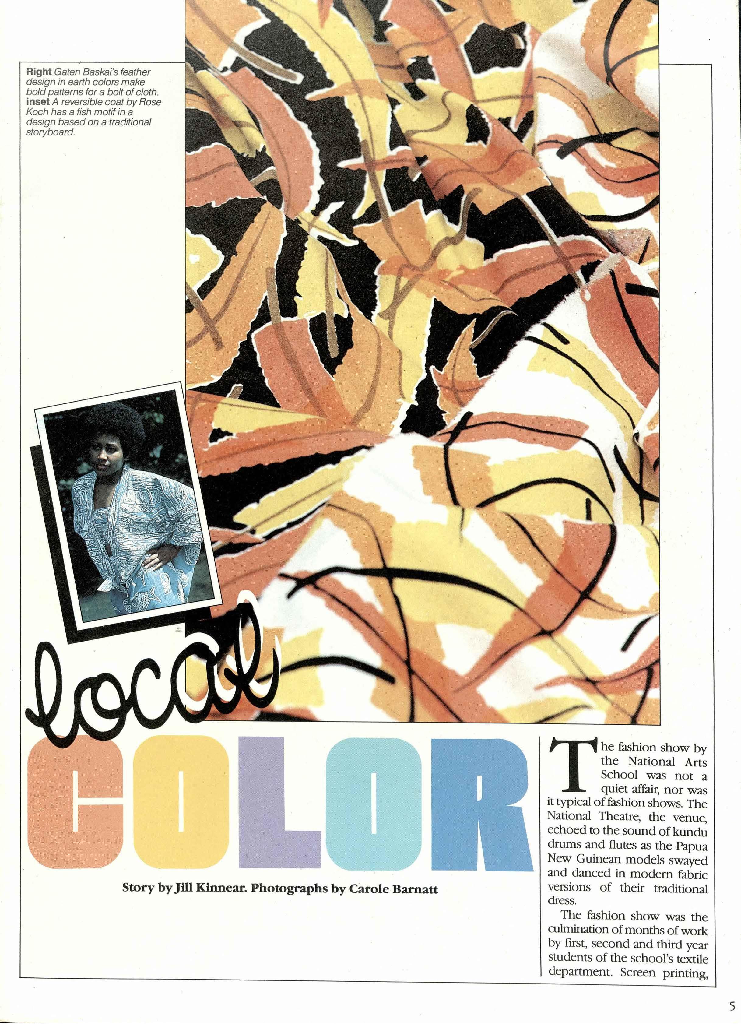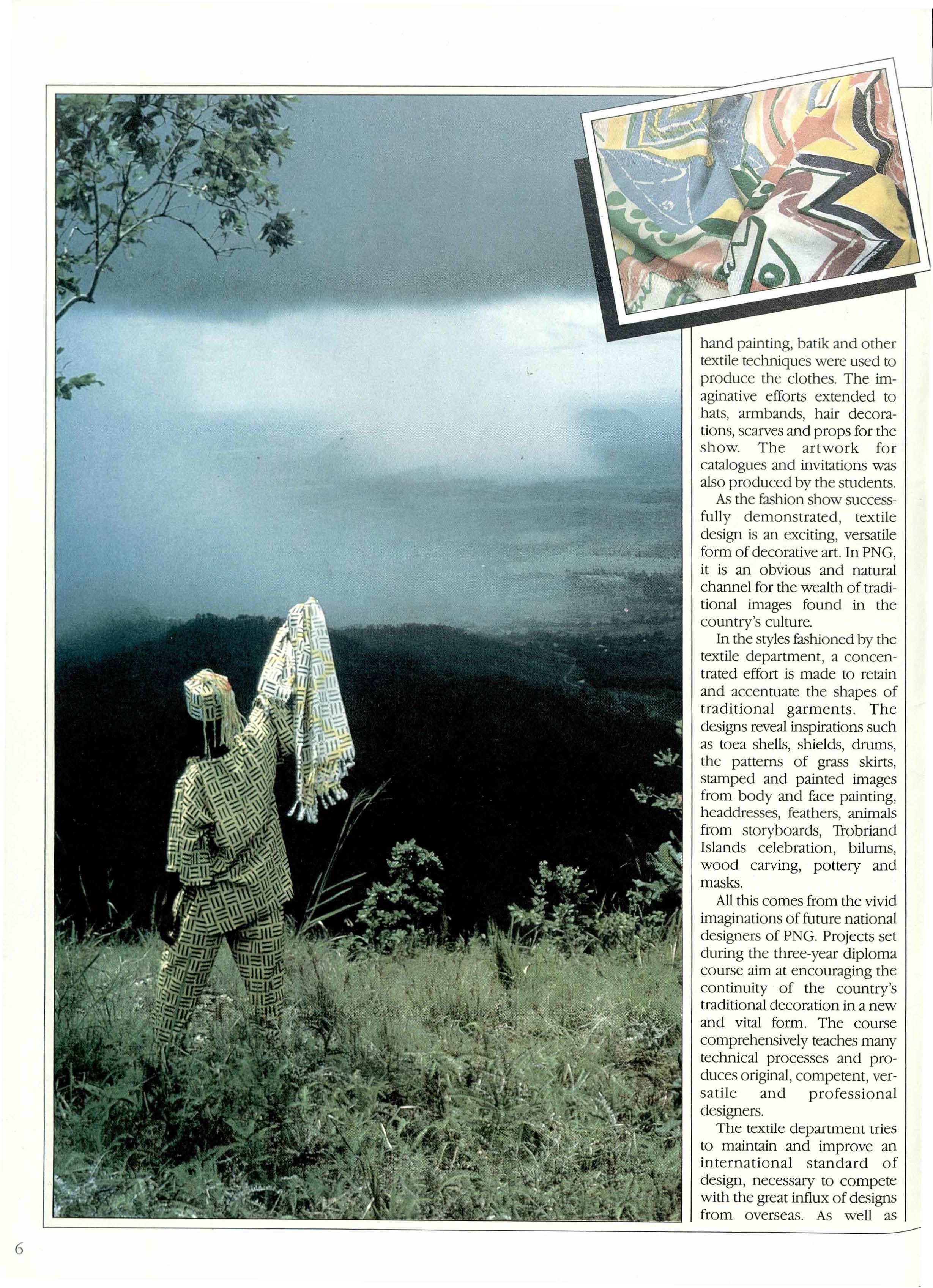 As the fashion show successfu IIy demonstrated, textile design is an exciting, versatile form of decorative art. In PNG, it is an obvious and natural channel for the wealth of traditional images found in the country's culture.