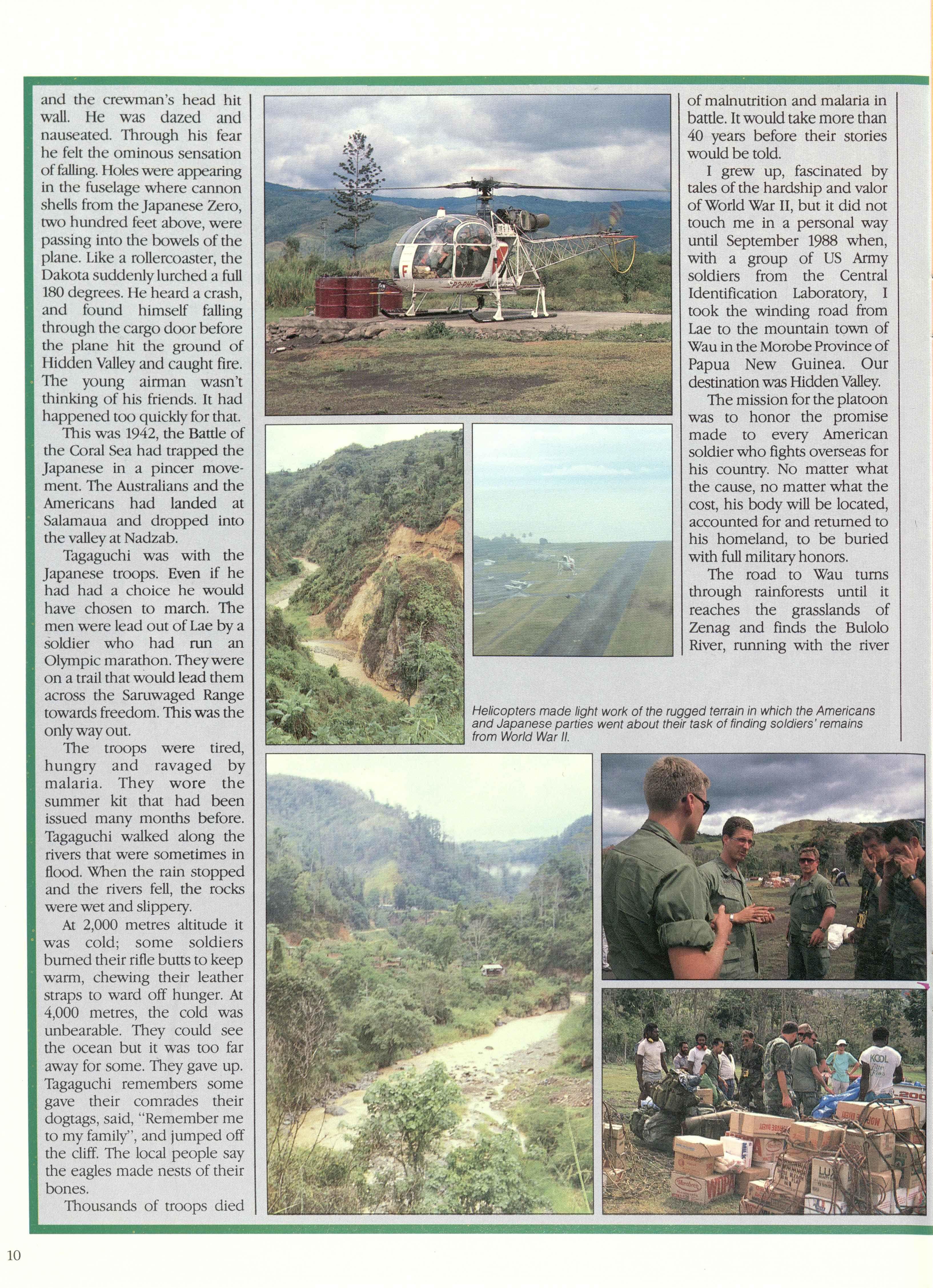 I grew up, fascinated by tales of the hardship and valor of World War II, but it did not touch me in a personal way until September 1988 when, with a group of US Army soldiers from the Central Identification Laboratory, I took the winding road from Lae to the mountain town of Wau in the Morobe Province of Papua New Guinea. Our destination wasHidden Valley.