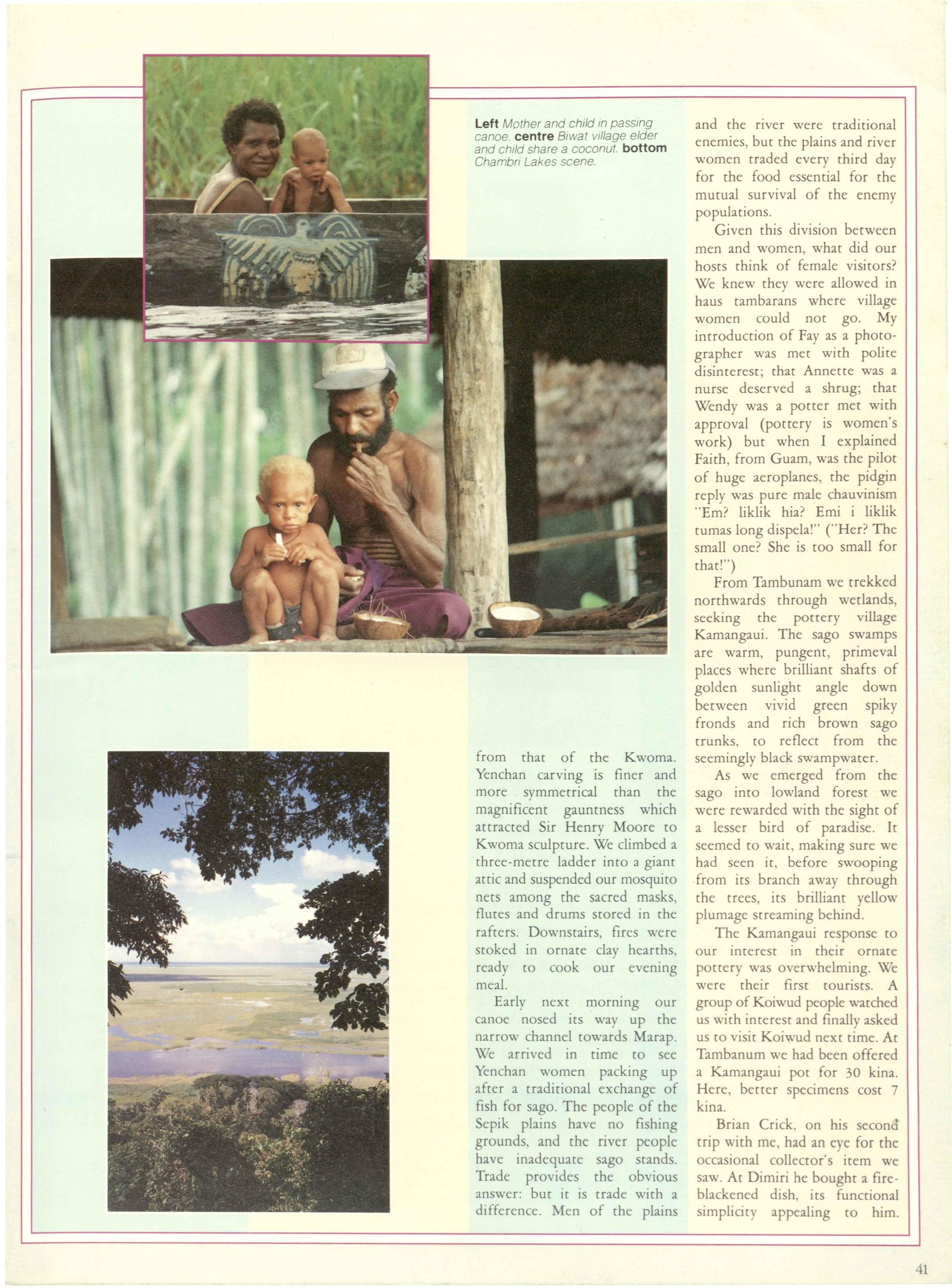 The Kamangaui response to our interest in their ornate pottery was overwhelming. We were their first tourists. A group of Koiwud people watched us with interest and finally asked us to visit Koiwud next time. At Tambanum we had been offered a Kamangaui pot for 30 kina. Here better specimens cost 7 kina.