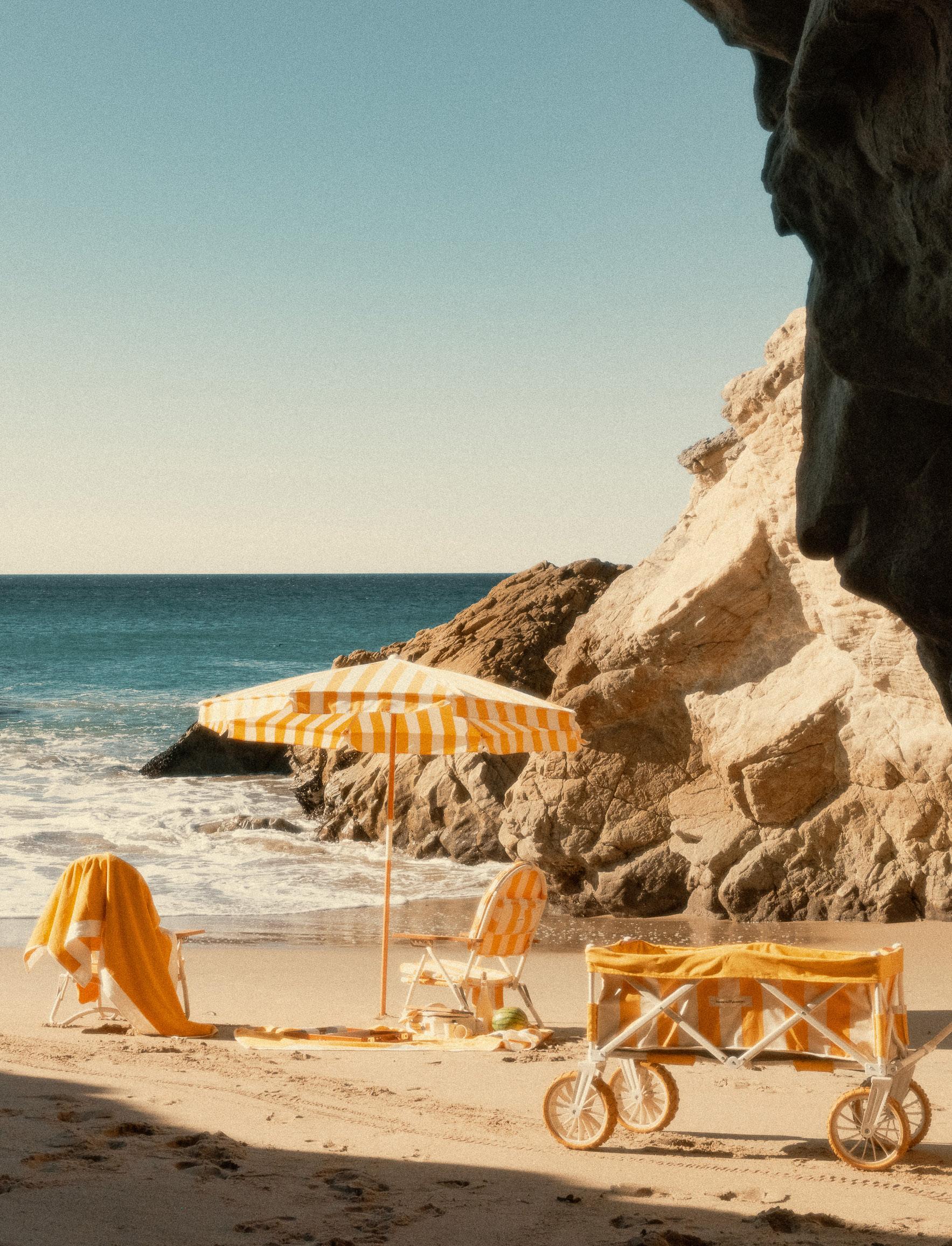 From umbrellas that cast painterly shade to chairs that sink into the sand, our beach collection is made for the coast—fabrics crafted to withstand salt, sun, and shifting tides. Every detail designed for days that wander easily from first light to fading dusk.