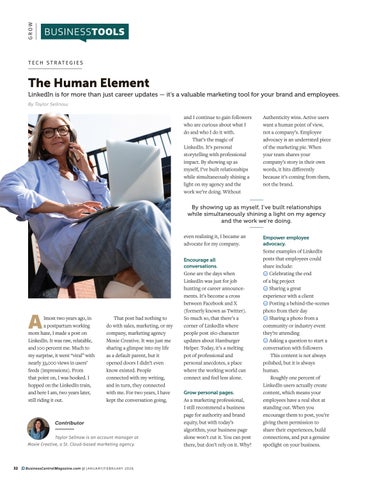 The Human Element LinkedIn is for more than just career updates — it’s a valuable marketing tool for your brand and employees. By Taylor Sellnow