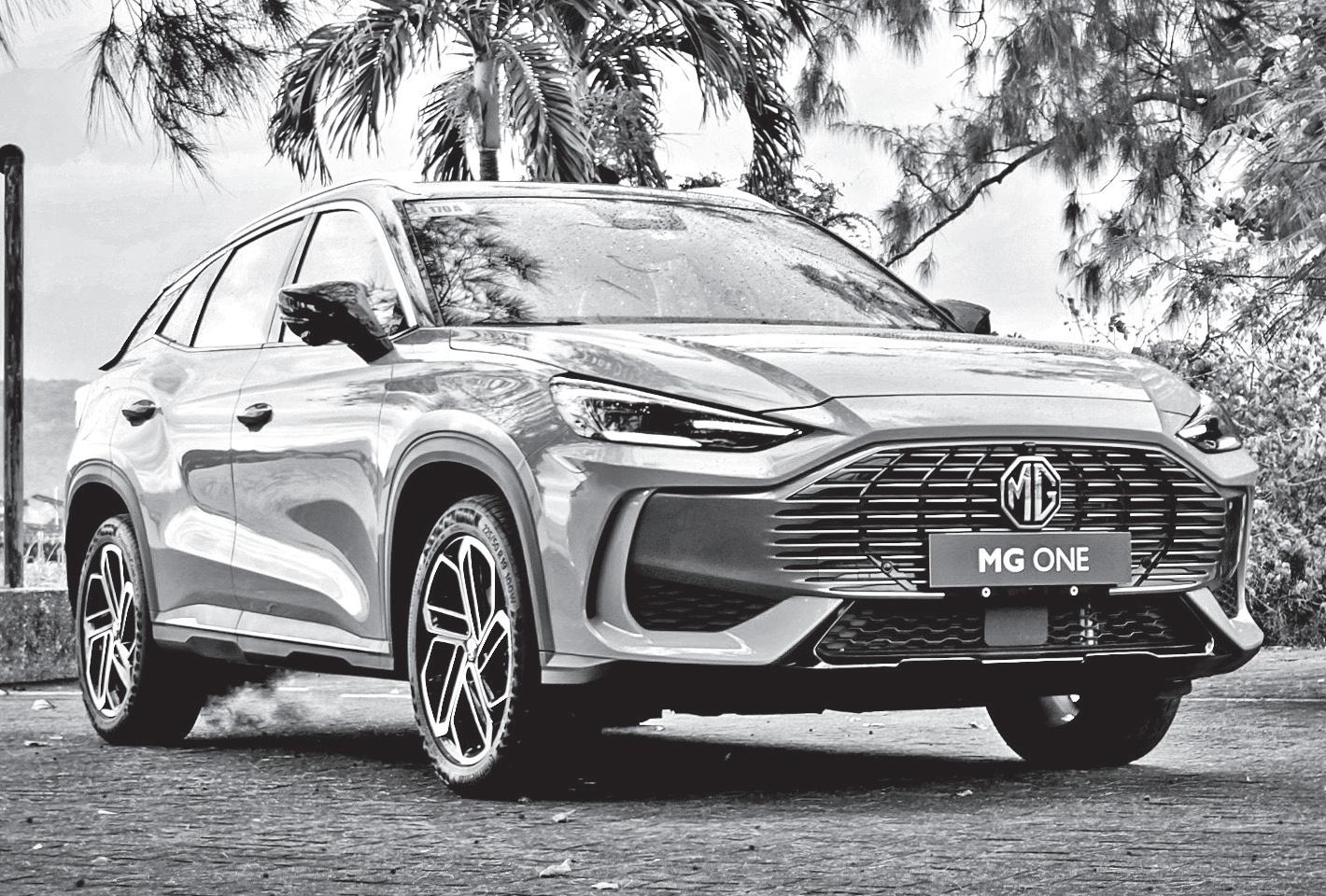 The head-turning MG One DRIVING back to Manila, the MG One was our next ride. Built on the SAIC Motor Intelligent Global Architecture (SIGMA) platform, it has that distinct, pronounced, and broad Sonic Boom Grille. There are also dynamic threedimensional LED headlights and taillights. Another notable design is the sloping roofline, suggesting a coupe-like profile while rolling on wide 19-inch wheels. In other words, it is basically a head-turner. Inside is all about advanced tech, convenience, and space. The main highlight is the 30inch wrap-around triple screen, which consists of a 5.4-inch touch switch screen, 12.3-inch driver