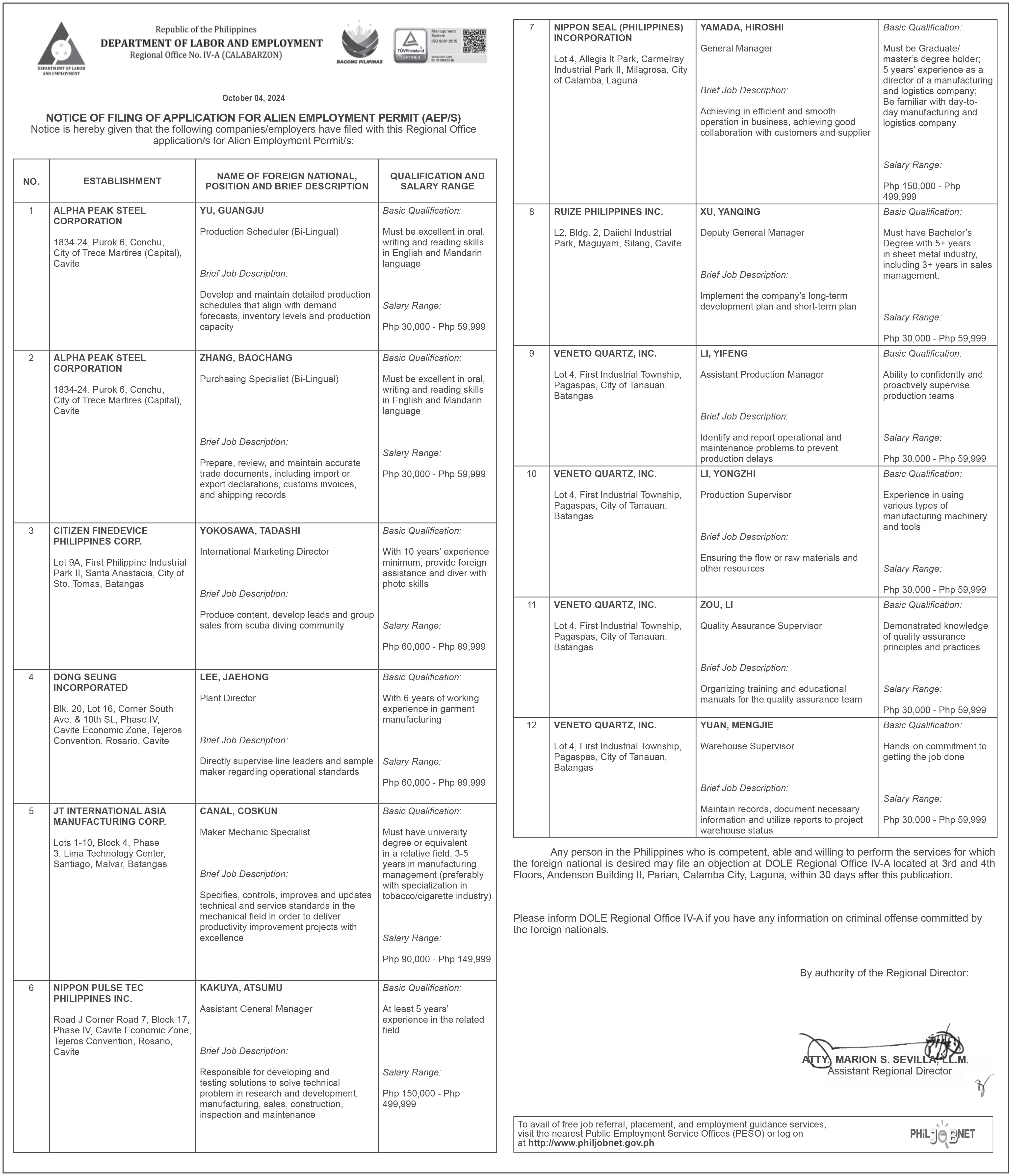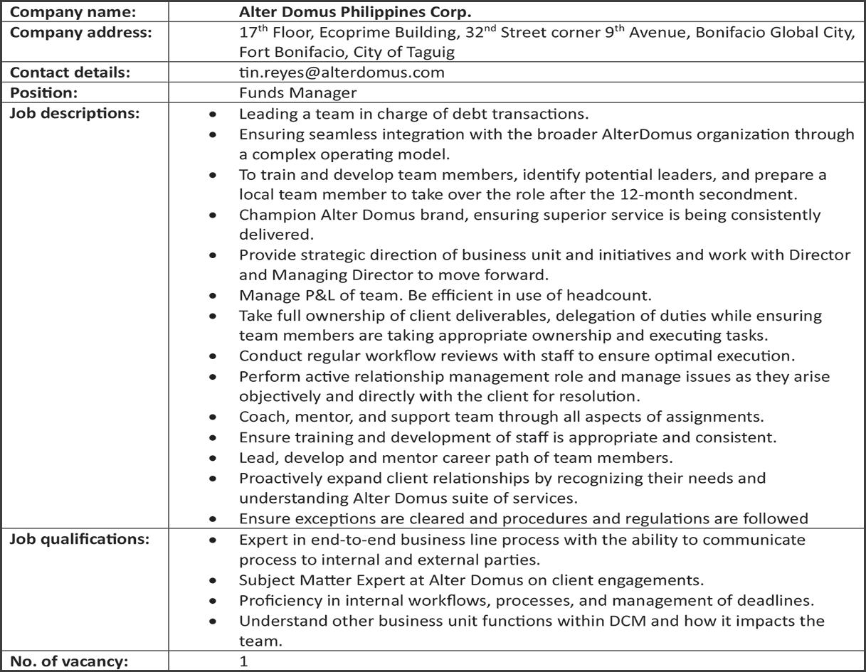She also worked as corporate secretary of MTQ Queen Trading Corp., administrative director of SH Holidays and Travel Corp., vice president of Ramoso Realty Corporation, treasurer of the BALRAM Commercial and Development Corporation, and chairperson