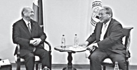 JERROLD MANGLIWAN with Mexico’s Salvador Hernandez during a break in training.