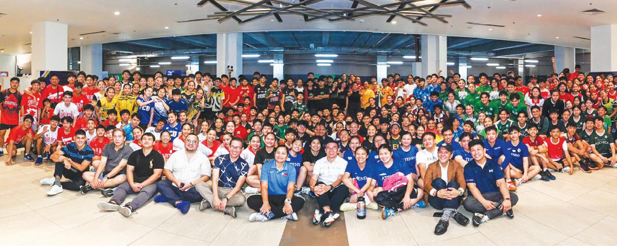 PARTICIPANTS in the Home Court Ayala Malls Manila Bay-Philippine Table Tennis Federation Intercollegiate and Interscholastic Challenge pose for a class picture.
