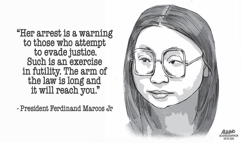 RESIDENT Marcos on Wednesday vowed swift resolution of the multiple cases against the dismissed mayor of Bamban, Tarlac, Alice Guo, who was arrested by the Indonesian police in Jakarta shortly before midnight on Tuesday.