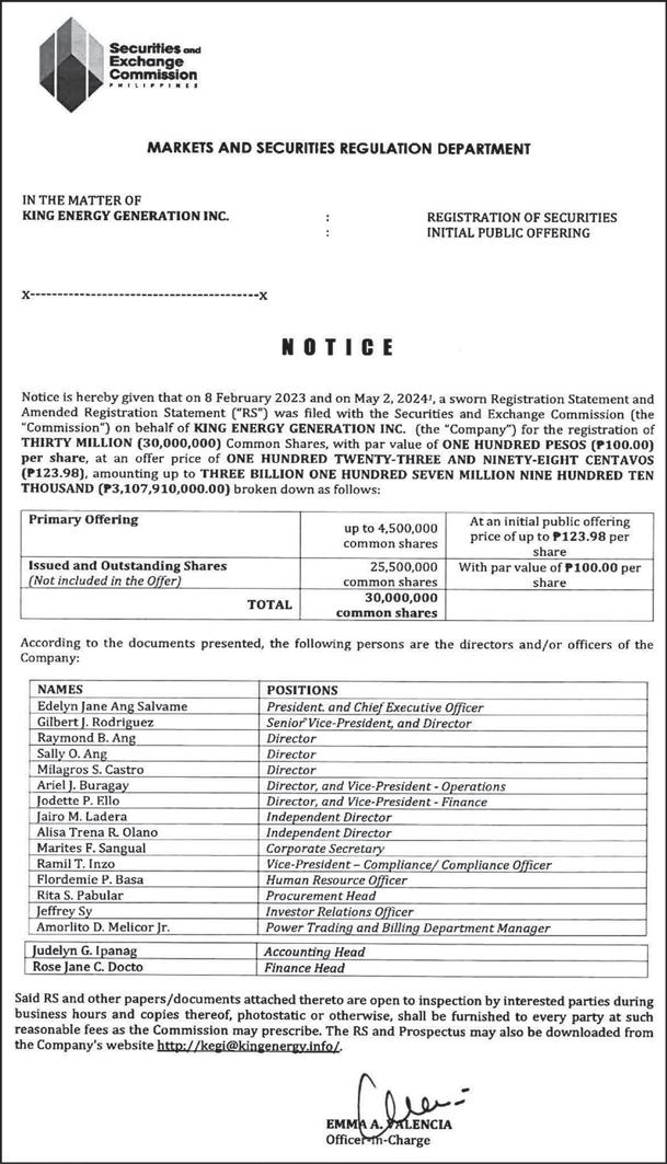 Meanwhile, the Energy Regulatory Commission (ERC) has ordered the staggered implementation of charges from Wholesale Electricity Spot Market (WESM) purchases in June over four equal monthly installments from June up to September to counter high electricity prices.