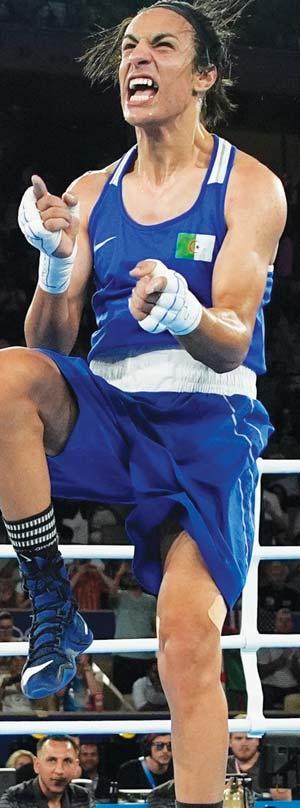 PARIS—Boxer Imane Khelif of Algeria advanced to the gold-medal bout in the women’s welterweight division at the Paris Olympics on Tuesday night, moving one win away from what she calls the best response to the worldwide scrutiny she has faced over misconceptions about her gender. With one more victory, Khelif would win Algeria’s second boxing gold medal and its first in women’s boxing. Khelif defeated Janjaem Suwannapheng of Thailand, 5-0, in the semifinals at Roland Garros, where the crowd roared for her and chanted her name repeatedly during her threeround fight. Khelif has won three consecutive bouts in Paris, and she