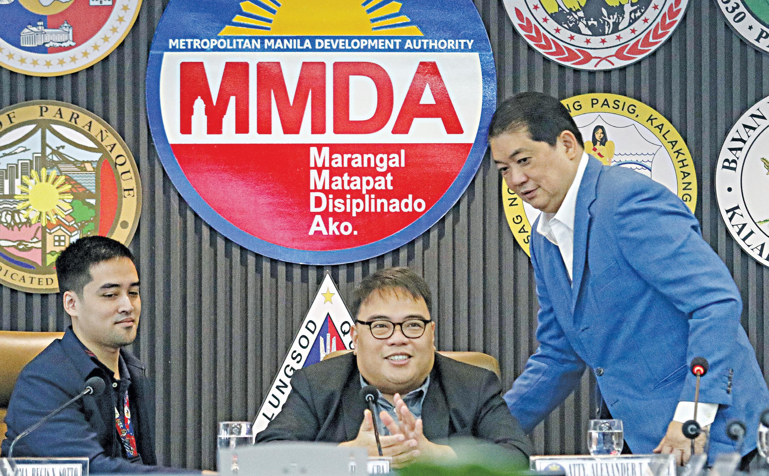 tOWIng thE lInE Metropolitan Manila Development authority c hairman atty. Don artes (middle), Pasig c ity Mayor Vico Sotto, and Philippine reclamation authority