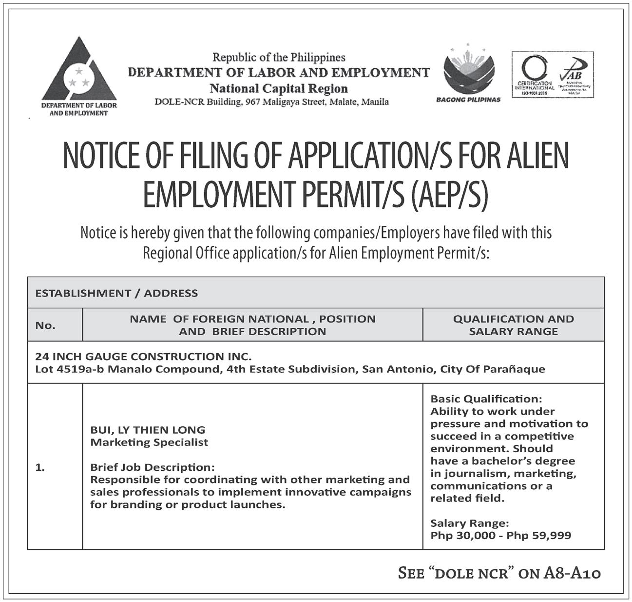 “Approved investments of foreign and Filipino nationals in the third quarter of 2024 were expected to generate a total of 33,727 employment,” PSA said.