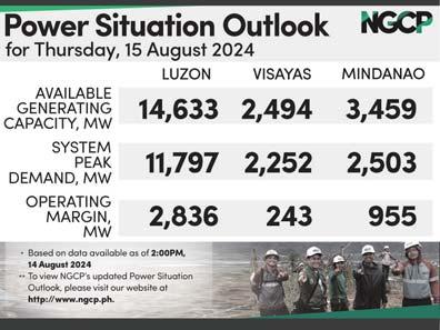 The credit rating agency expressed confidence that, in a year or two, the Philippines will be able to start decreasing the debt-toGDP ratio which was at its peak at 60.9 percent in 2022. It noted that the government also covers its financing needs through the issuance of government bonds in the domestic fi nancial market.