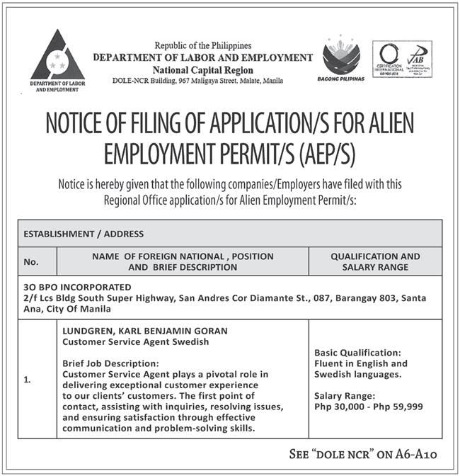 May. “Th is will be the fi rst time for President Shanmugaratnam to visit the Philippines in his official capacity as Singapore’s new head of state. The last Singaporean leader who visited the country was Halimah Yacob in 2019,” Garafi l said. Malacañang hopes the state visit will help further strengthen the country’s collaboration with Singapore since both countries formally established diplomatic ties on May 16, 1969. Singapore was the second country Marcos went on a state visit to after he won in the 2022 Presidential elections, thus establishing it as one of the countries he wants to have stronger ties with the Philippines.