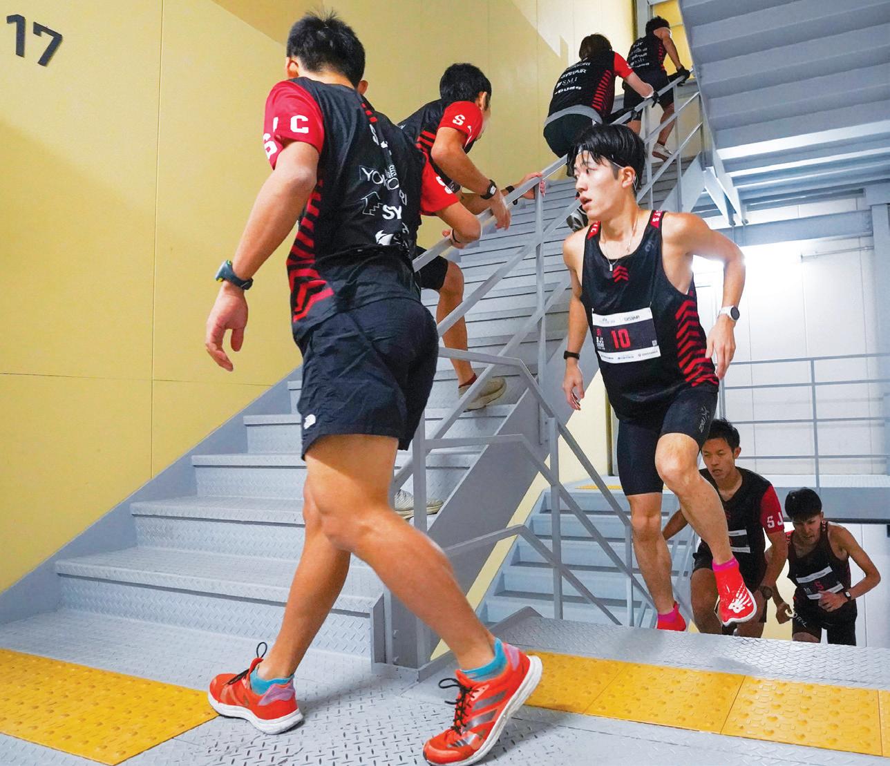 COMPETITORS climb stairs during the Stairclimbing World Championships in Osaka, Japan, in November 2023. AP