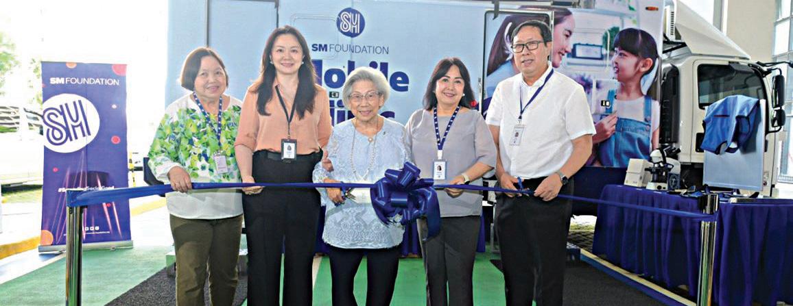 SM Foundation celebrates the launch of its sixth mobile clinic with a ribbon-cutting ceremony last August 7, 2024 at its headquarters in MOA Complex, Pasay. Leading the celebration is SM retail’s rose Siaco, SM Foundation’s executive director Debbie Sy, SM Group matriarch Felicidad Sy, health and medical programs executive director Connie Angeles, and trustee engr. ramon Gil Macapagal.