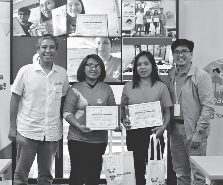 IN the photo are, from left, Hapinoy Co-Founder and President Mark Joquin Ruiz, Ka-panda WoW beneficiary Abegail Guzman, Ka-panda WoW beneficiary Rachel Silvano, and foodpanda Philippines Communications and Public Affairs Head Jerome Mangahas for the KapandaBIZ: Women on Wheels Commencement Activity