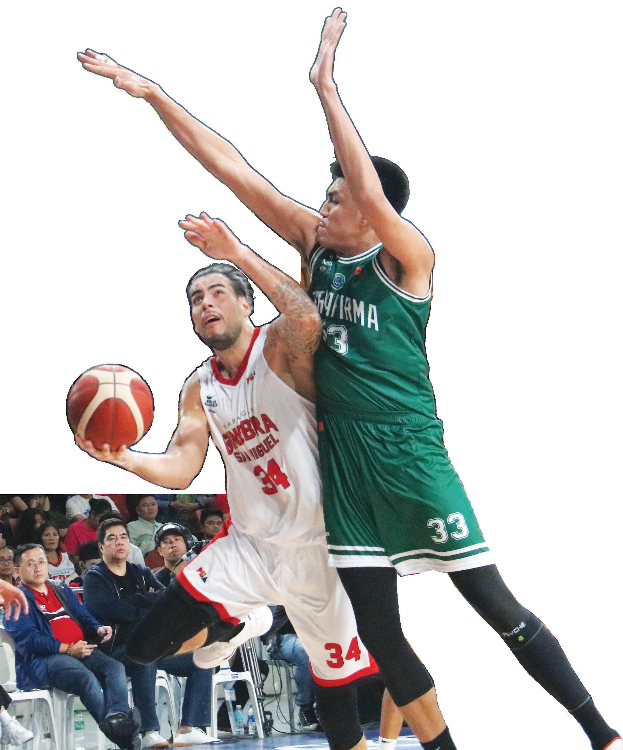 on the attack Barangay Ginebra San Miguel’s Christian Standhardinger attacks