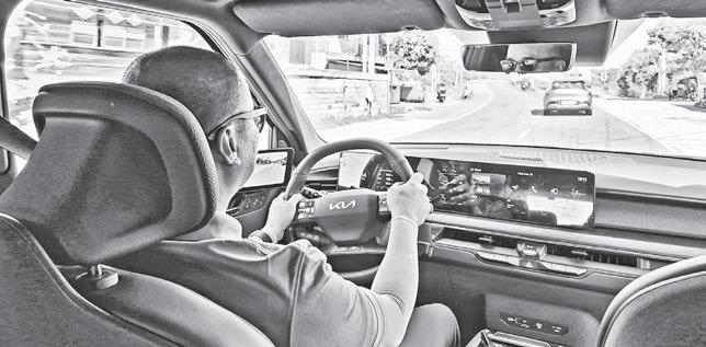 The Sonet perspective THE first task was the Sonet subcompact crossover SUV 1.5 SX AT variant—our only ICE-powered model. Under the hood is a 1.5-liter In-Line 4-Cylinder Dual Port Fuel Injected Smartstream gasoline engine, generating 113 hp and 144 N-m of torque, paired with the Kia Intelligent Variable Transmission. Departing from Solaire North, we took this small SUV through the Northern freeways up to Rosario, La Union, setting the stage for an insightful driving experience. Behind the wheel, small cars always entail fun-to-drive dynamics. Elevated, the driver’s seat provides a better vantage point and greater comfort. Thanks to the Sonet’s favorable powerto-weight ratio, driving the long stretch of NLEX was effortless. Acceleration is immediate—step on it, and it will deliver. The vehicle’s agility, nimbleness, and stable form persisted even at freeway speeds. Steering response stood out as well. For its size, the Sonet’s NVH is one for the books.