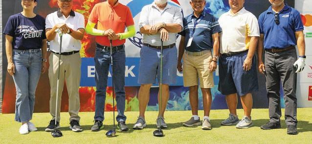 PAL MEN’S INTERCLUB ON Philippine Airlines (PAL) and Cebu City brass hit the ceremonial balls for the 74th PAL Men’s Interclub golf team championships on Sunday at the Cebu Country Club (CCC). Shown in photo are (from left) Dina May Flores of the PAL Interclub executive committee, CCC president Jose Soberano, Cebu City Mayor Michael Rama, CCC golf chairman Roberth Booth, Club Filipino de Cebu’s Ellie Espinosa and team captain Calvin Gothong and PAL assistant vice president for Sale Bong Velasquez.
