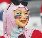 THE Philippines’ Hali Long (5) heads the ball during the second half of the match against Switzerland as Filipino fans cheer on the Filipinas on Friday. AP federation secretary-general Rep. Eric Buhain (left) with Xiandi Chua (center) and Pinky Brosas. RIANNE MALIXI TOLENTINO