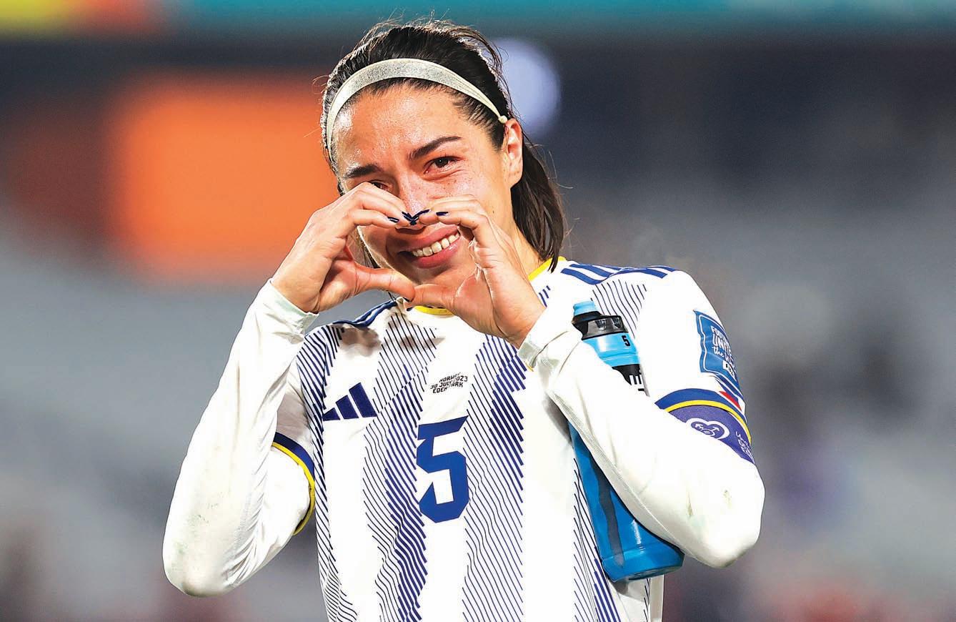 BIG FIGHTING HEART Hali Long then makes a heart sign after the Philippine national team called Filipinas close out their historic FIFA Women’s World Cup campaign with a 6-0 loss to Norway, a team ranked 34 rungs higher in the world rankings at No. 12. The Filipinas’ debut is marked by a breakthrough 1-0 victory over tournament co-host New Zealand.