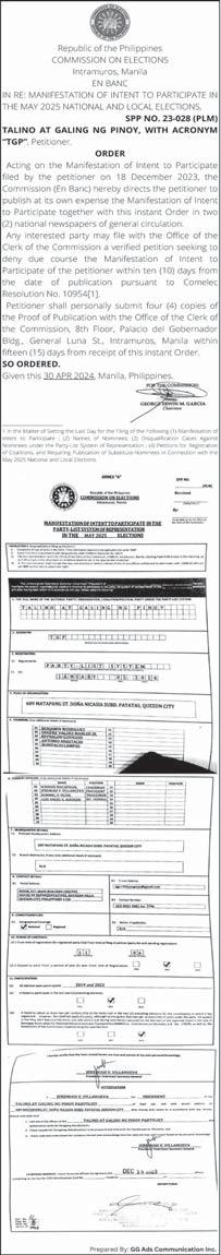 See “Hybrid,” A PESO EXCHANGE RATES US 57.4070 JAPAN 0.3691 UK 71.7473 HK 7.3441 CHINA 7.9471 SINGAPORE 42.3543 AUSTRALIA 37.7738 EU 61.7183 KOREA 0.0421 SAUDI ARABIA 15.3069 Source: BSP (May 9, 2024) w P. nationwide | sections pages | Friday, May 10, 2024 Vol. 19 No. 206 See “Debt-to-GDP,” A See “Sofitel,” A See “Spending,” A SOFITEL OWNER WANTS 25 YRS MORE ON ITS LEASE WITH GSIS Hybrid, upskilling, granular: 3 ways to improve job fairs Debt-to-GDP ratio narrows to 60.15% in Q1 BusinessMirror ROTARY CLUB OF MANILA JOURNALISM AWARDS 2006 National Newspaper of the Year 2011 National Newspaper of the Year 2013 Business Newspaper of the Year 2017 Business Newspaper of the Year 2019 Business Newspaper of the Year 2021 Pro Patria Award PHILIPPINE STATISTICS AUTHORITY 2018 Data Champion EJAP JOURNALISM AWARDS BUSINESS NEWS SOURCE OF THE YEAR 2017, 2018, 2019, 2020, 2021 DEPARTMENT OF SCIENCE AND TECHNOLOGY 2018 BANTOG MEDIA AWARDS TRABAHO PARA SA BAYAN SM, the Private Sector Advisory Council (PSAC), and industry giants join forces to bolster the workforce through Trabaho Para sa Bayan: Job Opportunities Building Skills (J.O.B.S.). A dedication ceremony for the program, spotlighting job creation and skills enhancement initiatives, took place at the SM Mall of Asia Music Hall on May 9, 2024. Leading PSAC’s J.O.B.S. initiative are SM Investments Corp. (SMIC) Vice Chairperson Teresita Sy-Coson (center) and SM Foundation Executive Director Deborah Sy (second from right), alongside: Philippine Exporters Confederation President Sergio Ortiz-Luis Jr., Go Negosyo Founder Joey Concepcion, Ayala Corporation Lead Independent Director Rizalina Mantaring, Employers Confederation of the Philippines (Ecop) Vice President Ferdinand Ferrer, Magsaysay Group of Companies President Doris Magsaysay-Ho, Philippine Chamber of Commerce and Industry (PCCI) Chairman George Barcelon, Jobstreet by SEEK Managing Director Dannah Majarocon, Special Assistant to the President for Investments and Economic Affairs Frederick Go, and Labor Secretary Bienvenido Laguesma. Full story below. CONTRIBUTED PHOTO