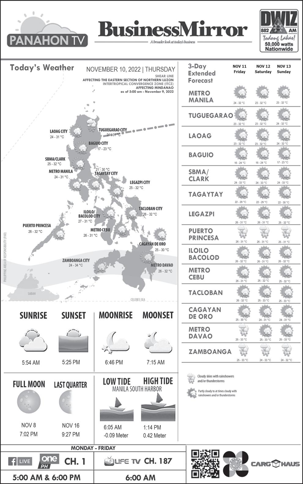 PESO EXCHANGE RATES US 58.2920 ■ JAPAN 0.4002 ■ UK 67.2690 ■ HK 7.4260 ■ SINGAPORE 41.6878 ■ AUSTRALIA 37.9073 ■ SAUDI ARABIA 15.5065 ■ EU 58.7350 ■ KOREA 0.0424 ■ CHINA 8.0603 Source: BSP (November 9, 2022) C A BusinessMirror A broader look at today’s business www.businessmirror.com.ph P. | | 7 DAYS A WEEK■ Thursday, November 10, 2022 Vol. 18 No. 29 ROTARY CLUB OF MANILA JOURNALISM AWARDS 2006 National Newspaper of the Year 2011 National Newspaper of the Year 2013 Business Newspaper of the Year 2017 Business Newspaper of the Year 2019 Business Newspaper of the Year 2021 Pro Patria Award PHILIPPINE STATISTICS AUTHORITY 2018 Data Champion EJAP JOURNALISM AWARDS BUSINESS NEWS SOURCE OF THE YEAR (2017, 2018, 2019, 2020) DEPARTMENT OF SCIENCE AND TECHNOLOGY 2018 BANTOG MEDIA AWARDS FARM OUTPUT ENDS 2-QTR CONTRACTION, GROWS 1.8%