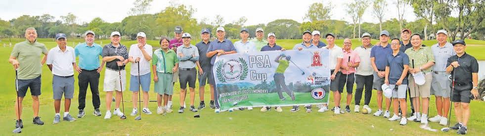SPORTSWRITERS, sports officials and guests pose for posterity after the tournament at the Manila Southwoods’s Legends course. PSA PHOTO