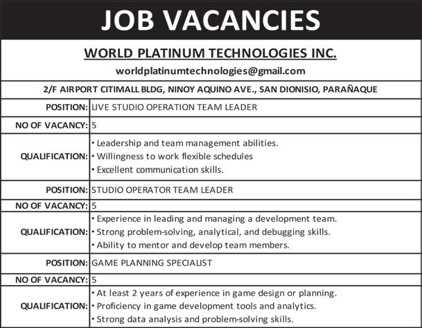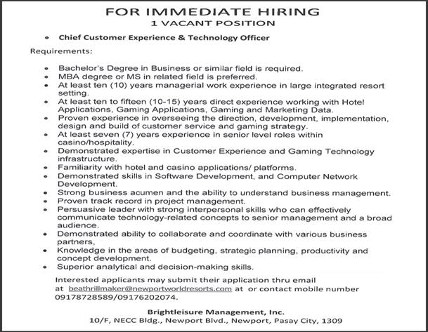 Basic Qualification: Must be proficient in speaking, reading and writing in Mandarin language. Salary Range: Php 150,000 - Php 499,999