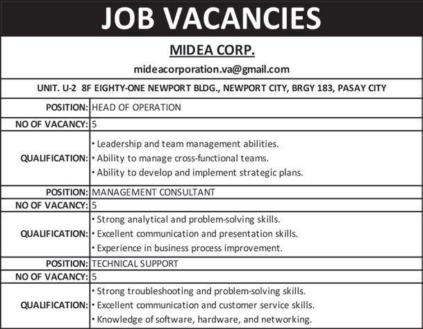 Qualification: Graduate of Bachelor’s degree in any field, at least 2 years of working experience, and proficient in speaking and writing in English and Korean (Hangul) languages. Salary Range: Php 30,000 - Php 59,999