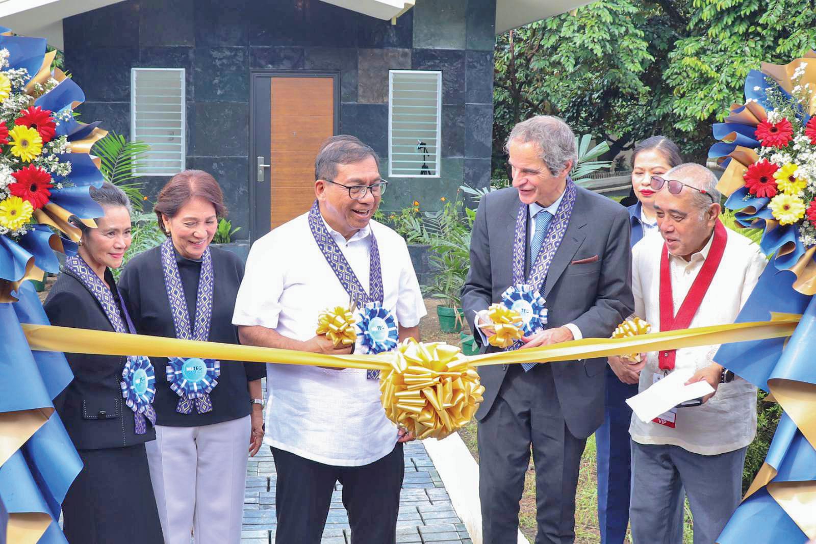 SCIENCE and Technology Secretary Renato U. Solidum Jr., PNRI Director Dr. Carlo Arcilla, and International Atomic Energy Agency (IAEA) Director General Rafael Mariano Grossi officially unveil the Post-radiation Reactive Extrusion of Plastic Wastes (PREx) Prototype House at the PNRI grounds in Quezon City. DOST-PNRI