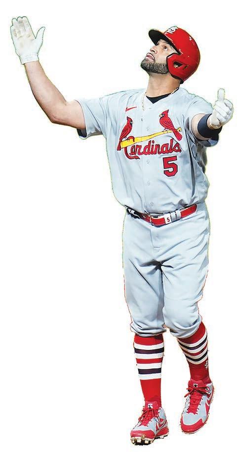 NO. 703 The St. Louis Cardinals’ Albert Pujols looks up to the sky after hitting his career home run No. 703 during the fifth inning of their Major League Baseball game against the Pittsburgh Pirates Monday in Pittsburgh—breaking a tie with Babe Ruth for second place in career RBIs (runs batted in). AP