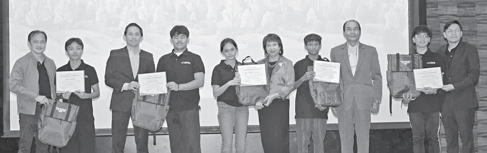 KRELZ GECOSALA (second from left) and Kresthan Belacas receive their MVP trophies from Davao del Norte coach Jing Lobregas and Philta Region XI representative Gilbert Paylado.